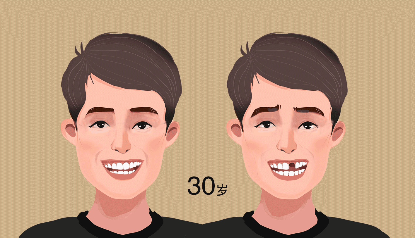 缺牙不及時修復,不僅影響日常生活還會危害身體健康,牙齒缺失導致對頜牙伸長、鄰牙傾斜,陷入“掉牙怪圈”,咀嚼功能變差影響消化系統,造成營養不良,下頜缺少支撐,面容呈現明顯衰老,吐詞不清、溝通困難。