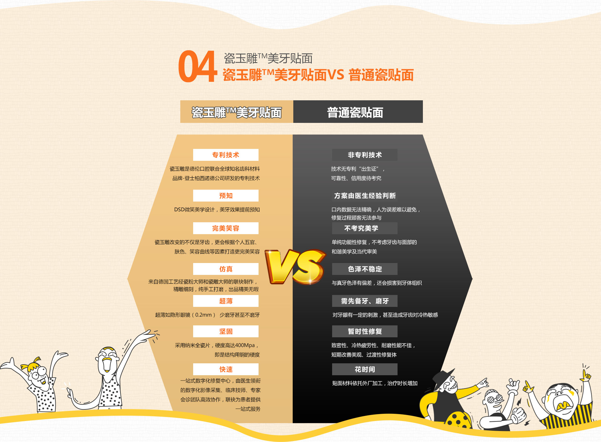 瓷玉雕TM美牙貼面技術適合色素牙、四環素牙、氟斑牙、個小牙、牙齒不齊、牙間隙、牙齒折斷、牙齒缺損、牙齒不齊等人群使用,適用范圍非常廣泛。